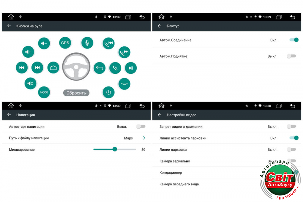 - Управление кнопками на руле. На каждую кнопку можно запрограммировать 1 функцию (только аналоговые кнопки);