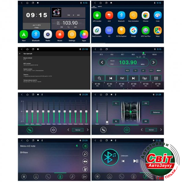 - Bluetooth: с поддержкой списка контактов и A2DP аудио