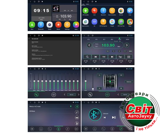Медиасистема Sound Box SB-8118 2G CA оборудована 10.1-дюймовым емкостным монитором с поддержкой технологии «мультитач» и разрешающей способностью 1024х600 точек. За высокую производительность девайса отвечает 4-ядерный процессор Allwinner T3 1.6 GHz. Объем оперативной памяти составляет 2 Гб, а встроенной – 16 Гб, за счет чего обеспечивается многозадачность девайса.