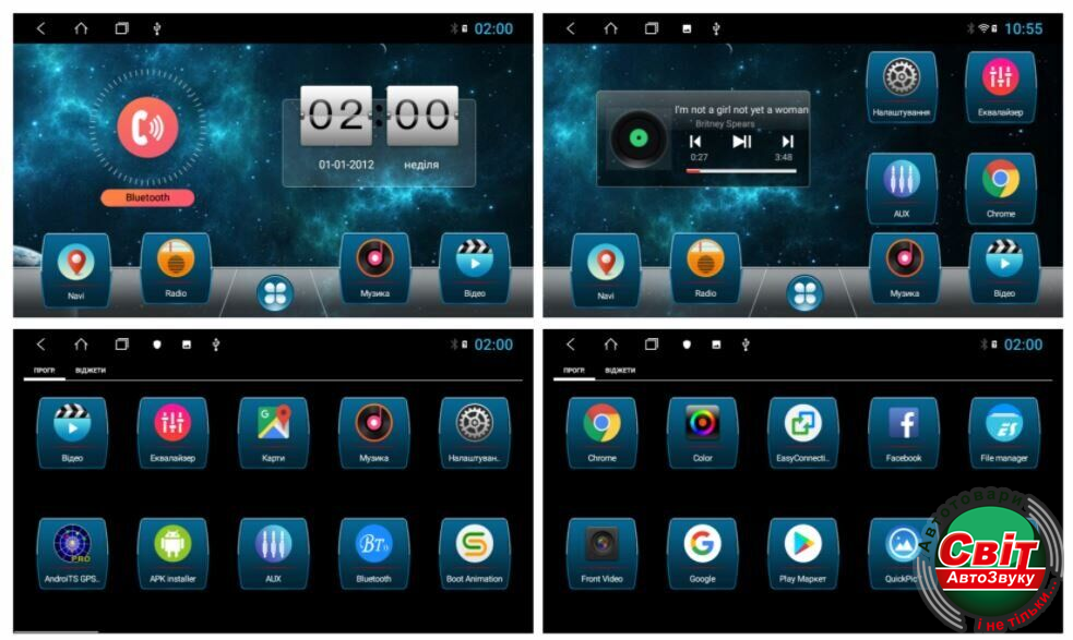 За качество звучания отвечает четырёхканальный усилитель звука TDA 7851, с мощностью 4х50 Вт / 4 Ом. Если хотите больше – всегда можно усилиться опционально, построив нужную аудиосцену. Для этого медиасистема оснащена необходимыми разъёмами: для акустики – ISO, доп.усилителю и subwoofer – AV-Out, для плеера и прочих коммуникационных девайсов подготовлен тыльный AUX. За звуковой тембр и баланс фронт / тыл / сабвуфер отвечает 12-ти полосный эквалайзер, позволяющий провести отладку максимально точно. Вы можете выбрать воспроизведение аудио по папкам / трекам / исполнителям.