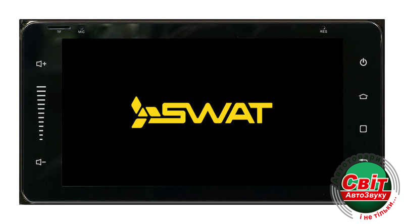 Бренд Swat оснастил модель встроенным сенсорным дисплеем с диагональю 7 дюймов, отличающимся высоким разрешением. Также возможно управление системой через кнопки на руле.