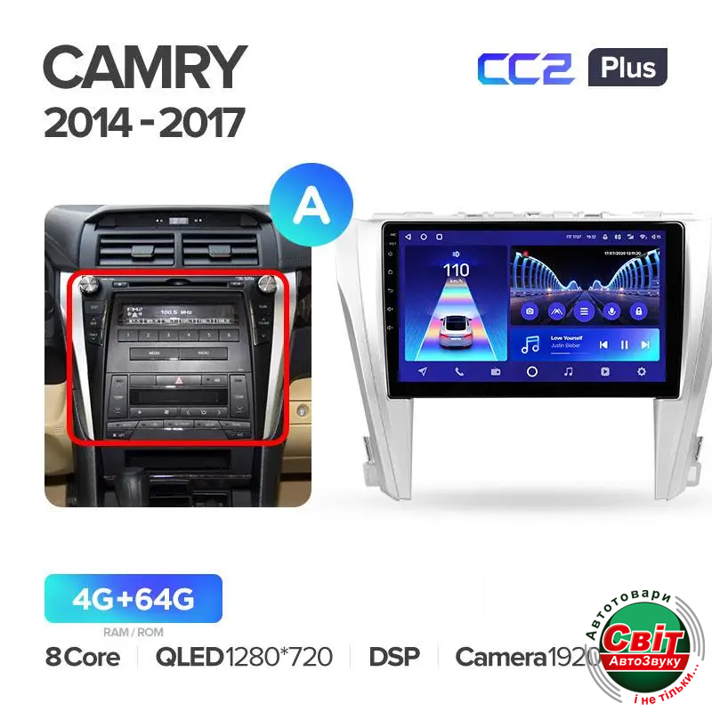 Автомагнітола штатна Teyes CC2 PLUS 4+64 Gb Toyota Camry 7 XV 50 55 2014-2017 (A) 10