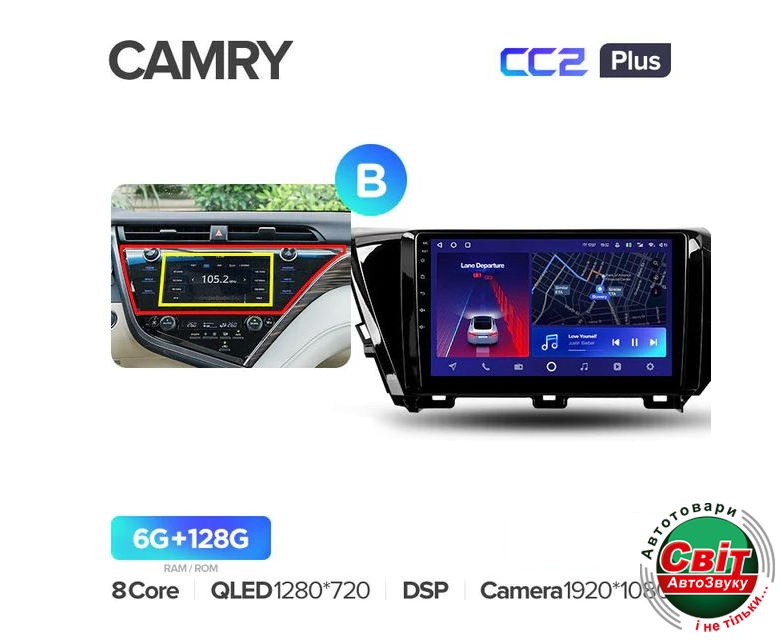- ›Автомагнітола штатна Teyes CC2 PLUS 6+128 Gb Toyota Camry 8 XV 70 2017-2020 (B) 10