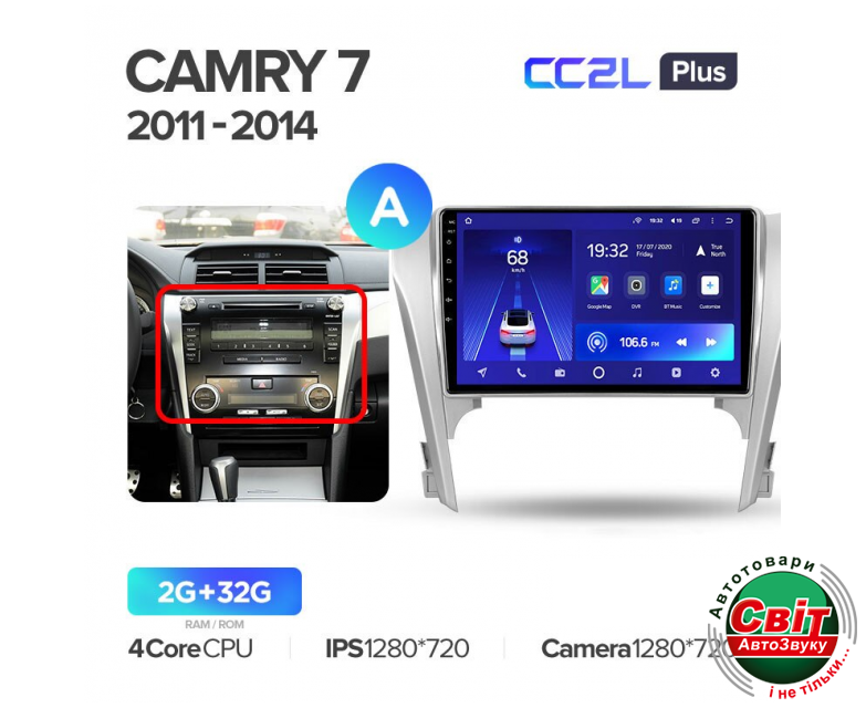 Автомагнітола штатна Teyes CC2L-PLUS 2+32 Gb Toyota Camry 7 XV 50 55 2011-2014 (A) 10IPS екран