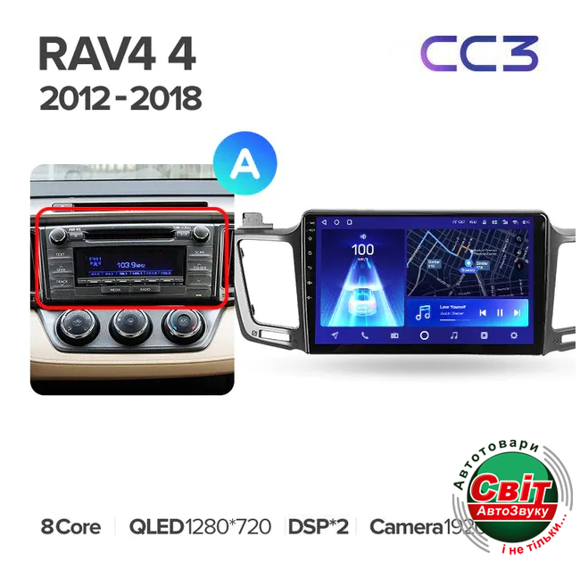 Автомагнітола штатна Teyes CC3 4+64 Gb Toyota RAV4 4 XA40 5 XA50 2012-2018 (A) 10Автомагнітола TeYes CC3 - це сучасний штатний головний пристрій побудований на якісних компонентах, з яким Ви отримаєте швидку швидкість роботи, багатофункціональність та універсальність засновану на новітній операційній системі Android 10, а повна інтеграція з оригінальними системами авто подарує приємні враження від кожної хвилини проведеної в автомобілі.