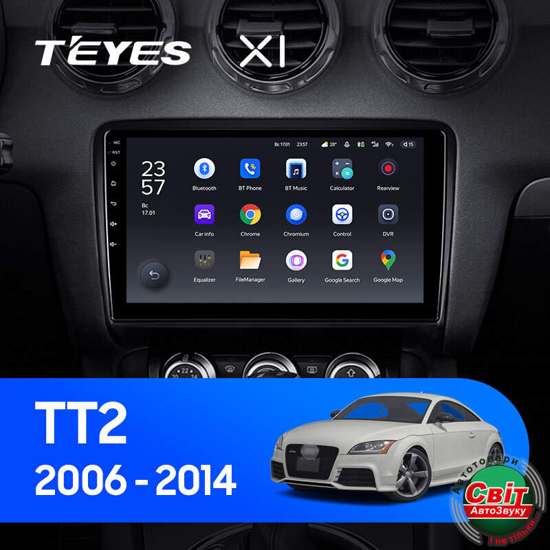 Автомагнітола штатна Teyes X1 2+32Gb Audi TT 2 2006-2014 9Штатна автомагнітола TeYes X1 - яскравий приклад багатофункціонального навігаційно-мультимедійного пристрою, корпус якого максимально впишеться в інтер'єр салону. Висока якість складання та комплектуючих - запорука бездоганної роботи головного пристрою. Крім стандартних функцій, властивих і штатним моделям, автомагнітола Тіайс Х1 на ОС Андроїд 10 має масу додаткових можливостей.
