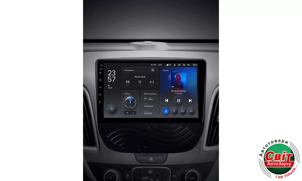У штатній автомагнітолі TeYes X1 2GB+32GB 4G+WiFi вперше застосовується технологія автоматичної зміни режиму на темний і світлий. Визначення режиму дня і ночі здійснюється відповідно до включення світла фар або часу сходу та заходу сонця. Для досягнення візуальної єдності перемикання режимів відбувається не тільки на головному екрані, але і в інших інтерфейсах пристрою.