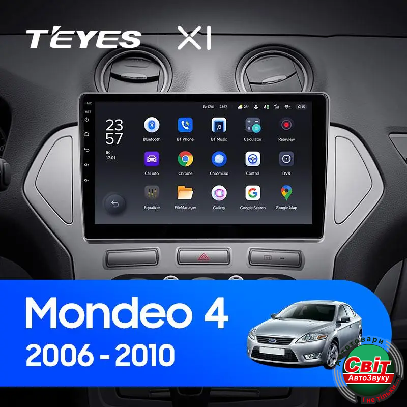 Автомагнітола штатна Teyes X1 2+32Gb Ford Mondeo 4 2006-2010 10Штатна автомагнітола TeYes X1 - яскравий приклад багатофункціонального навігаційно-мультимедійного пристрою, корпус якого максимально впишеться в інтер'єр салону. Висока якість складання та комплектуючих - запорука бездоганної роботи головного пристрою. Крім стандартних функцій, властивих і штатним моделям, автомагнітола Тіайс Х1 на ОС Андроїд 10 має масу додаткових можливостей.