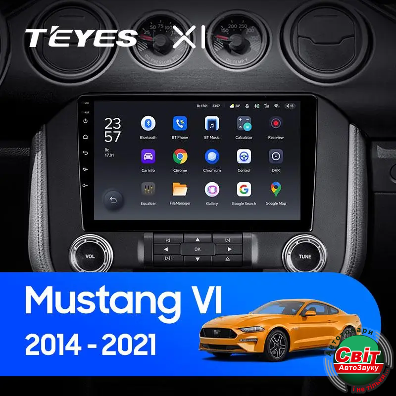 Автомагнітола штатна Teyes X1 2+32Gb Ford Mustang VI S550 (F2) 2014-2021 9Штатна автомагнітола TeYes X1 - яскравий приклад багатофункціонального навігаційно-мультимедійного пристрою, корпус якого максимально впишеться в інтер'єр салону. Висока якість складання та комплектуючих - запорука бездоганної роботи головного пристрою. Крім стандартних функцій, властивих і штатним моделям, автомагнітола Тіайс Х1 на ОС Андроїд 10 має масу додаткових можливостей.