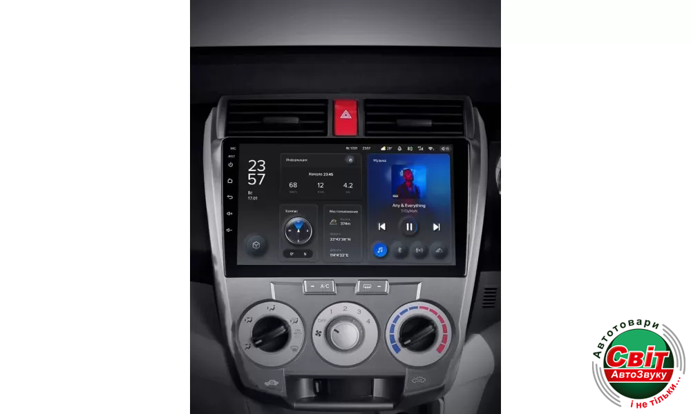 Автомагнітола штатна Teyes X1 2+32Gb Honda City 2008-2013 10Штатна автомагнітола TeYes X1 - яскравий приклад багатофункціонального навігаційно-мультимедійного пристрою, корпус якого максимально впишеться в інтер'єр салону. Висока якість складання та комплектуючих - запорука бездоганної роботи головного пристрою. Крім стандартних функцій, властивих і штатним моделям, автомагнітола Тіайс Х1 на ОС Андроїд 10 має масу додаткових можливостей.