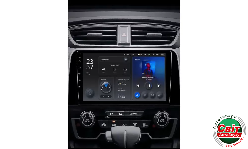 У штатній автомагнітолі TeYes X1 2GB+32GB 4G+WiFi вперше застосовується технологія автоматичної зміни режиму на темний і світлий. Визначення режиму дня і ночі здійснюється відповідно до включення світла фар або часу сходу та заходу сонця. Для досягнення візуальної єдності перемикання режимів відбувається не тільки на головному екрані, але і в інших інтерфейсах пристрою.