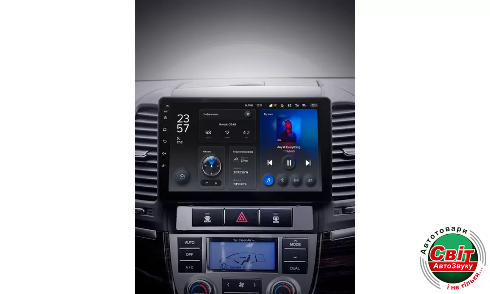 У штатній автомагнітолі TeYes X1 2GB+32GB 4G+WiFi вперше застосовується технологія автоматичної зміни режиму на темний і світлий. Визначення режиму дня і ночі здійснюється відповідно до включення світла фар або часу сходу та заходу сонця. Для досягнення візуальної єдності перемикання режимів відбувається не тільки на головному екрані, але і в інших інтерфейсах пристрою.