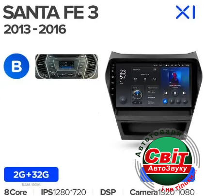 Автомагнітола штатна Teyes X1 2+32Gb Hyundai Santa Fe 3 2013-2016 (B) 9
