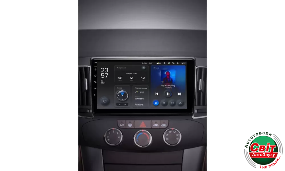 У штатній автомагнітолі TeYes X1 2GB+32GB 4G+WiFi вперше застосовується технологія автоматичної зміни режиму на темний і світлий. Визначення режиму дня і ночі здійснюється відповідно до включення світла фар або часу сходу та заходу сонця. Для досягнення візуальної єдності перемикання режимів відбувається не тільки на головному екрані, але і в інших інтерфейсах пристрою.