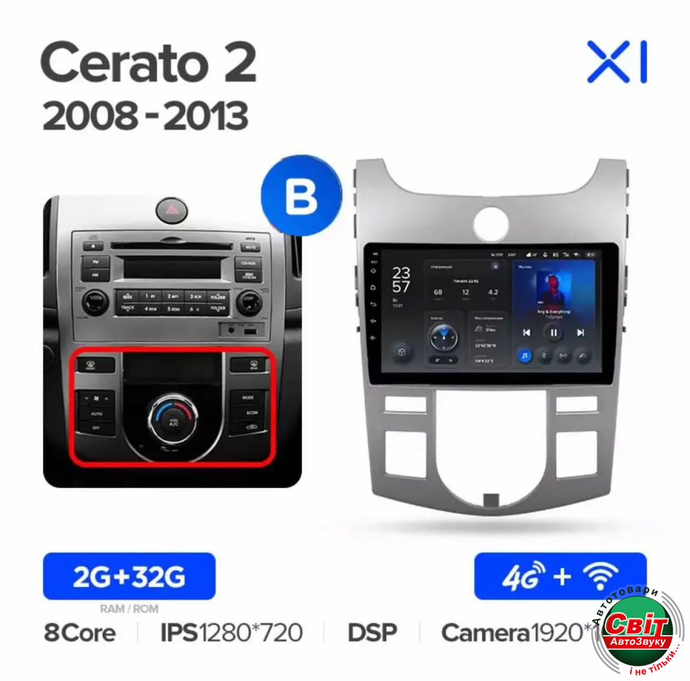 Фото Автомагнітола штатна Teyes X1 2+32Gb Kia Cerato 2 TD 2008-2013 (B) 9