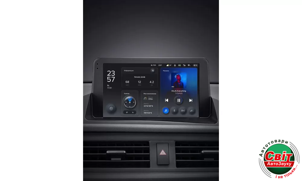 У штатній автомагнітолі TeYes X1 2GB+32GB 4G+WiFi вперше застосовується технологія автоматичної зміни режиму на темний і світлий. Визначення режиму дня і ночі здійснюється відповідно до включення світла фар або часу сходу та заходу сонця. Для досягнення візуальної єдності перемикання режимів відбувається не тільки на головному екрані, але і в інших інтерфейсах пристрою.
