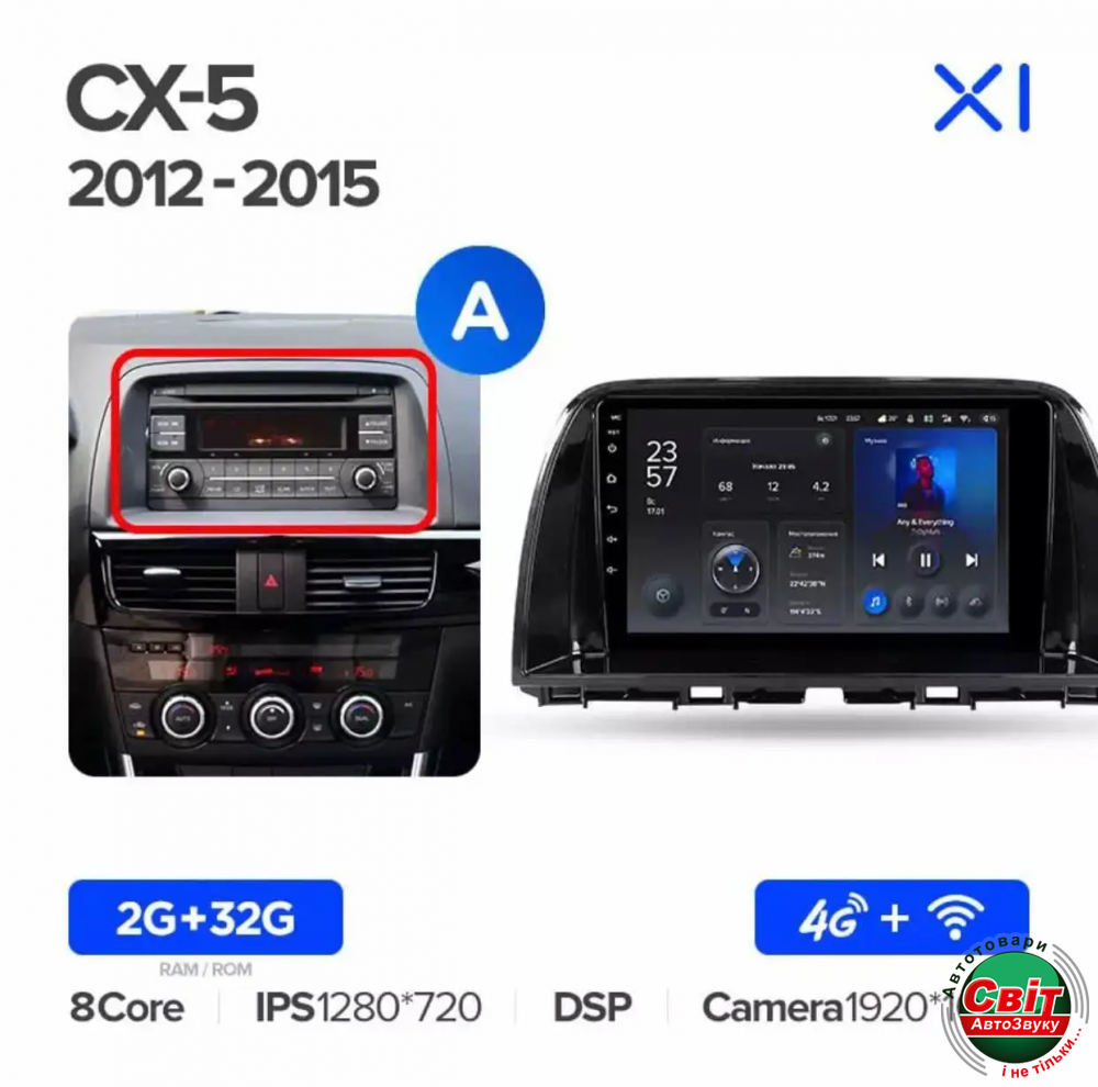 Автомагнітола штатна Teyes X1 2+32Gb Mazda CX5 CX-5 CX 5 1 KE 2012-2015 (A) 9Штатна автомагнітола TeYes X1 - яскравий приклад багатофункціонального навігаційно-мультимедійного пристрою, корпус якого максимально впишеться в інтер'єр салону. Висока якість складання та комплектуючих - запорука бездоганної роботи головного пристрою. Крім стандартних функцій, властивих і штатним моделям, автомагнітола Тіайс Х1 на ОС Андроїд 10 має масу додаткових можливостей.