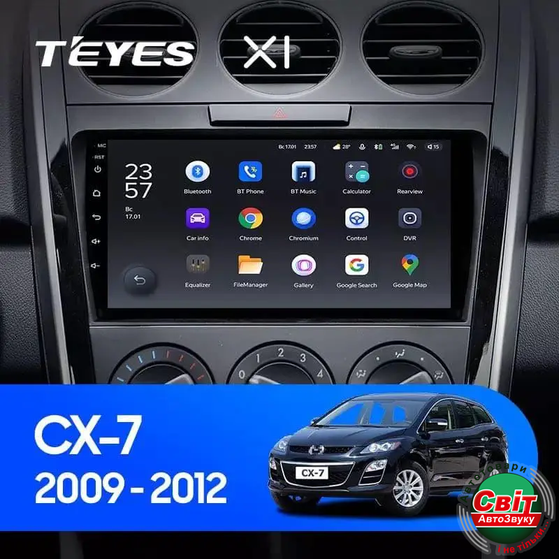 Автомагнітола штатна Teyes X1 2+32Gb Mazda CX7 CX-7 CX 7 ER 2009-2012 9Штатна автомагнітола TeYes X1 - яскравий приклад багатофункціонального навігаційно-мультимедійного пристрою, корпус якого максимально впишеться в інтер'єр салону. Висока якість складання та комплектуючих - запорука бездоганної роботи головного пристрою. Крім стандартних функцій, властивих і штатним моделям, автомагнітола Тіайс Х1 на ОС Андроїд 10 має масу додаткових можливостей.