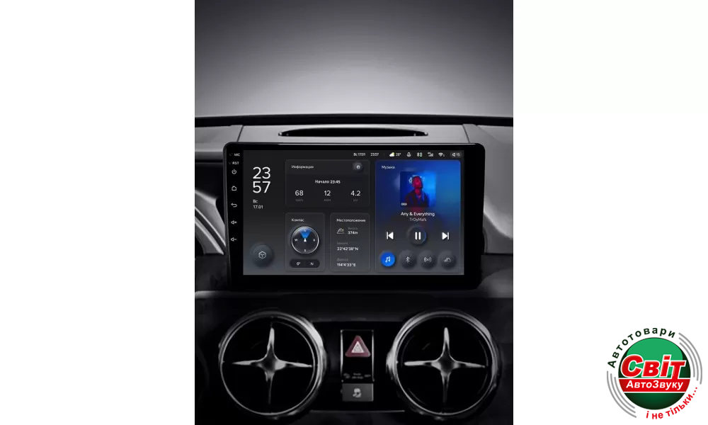У штатній автомагнітолі TeYes X1 2GB+32GB 4G+WiFi вперше застосовується технологія автоматичної зміни режиму на темний і світлий. Визначення режиму дня і ночі здійснюється відповідно до включення світла фар або часу сходу та заходу сонця. Для досягнення візуальної єдності перемикання режимів відбувається не тільки на головному екрані, але і в інших інтерфейсах пристрою.