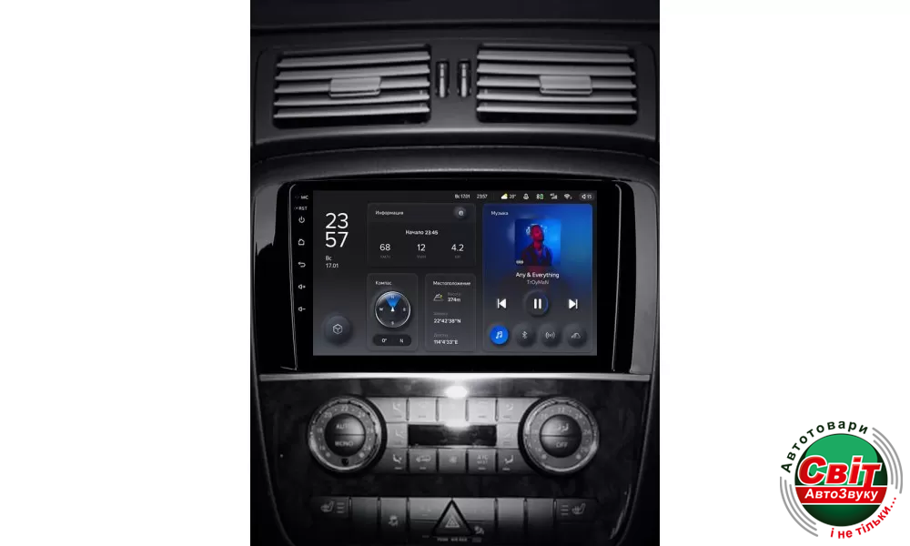 У штатній автомагнітолі TeYes X1 2GB+32GB 4G+WiFi вперше застосовується технологія автоматичної зміни режиму на темний і світлий. Визначення режиму дня і ночі здійснюється відповідно до включення світла фар або часу сходу та заходу сонця. Для досягнення візуальної єдності перемикання режимів відбувається не тільки на головному екрані, але і в інших інтерфейсах пристрою.