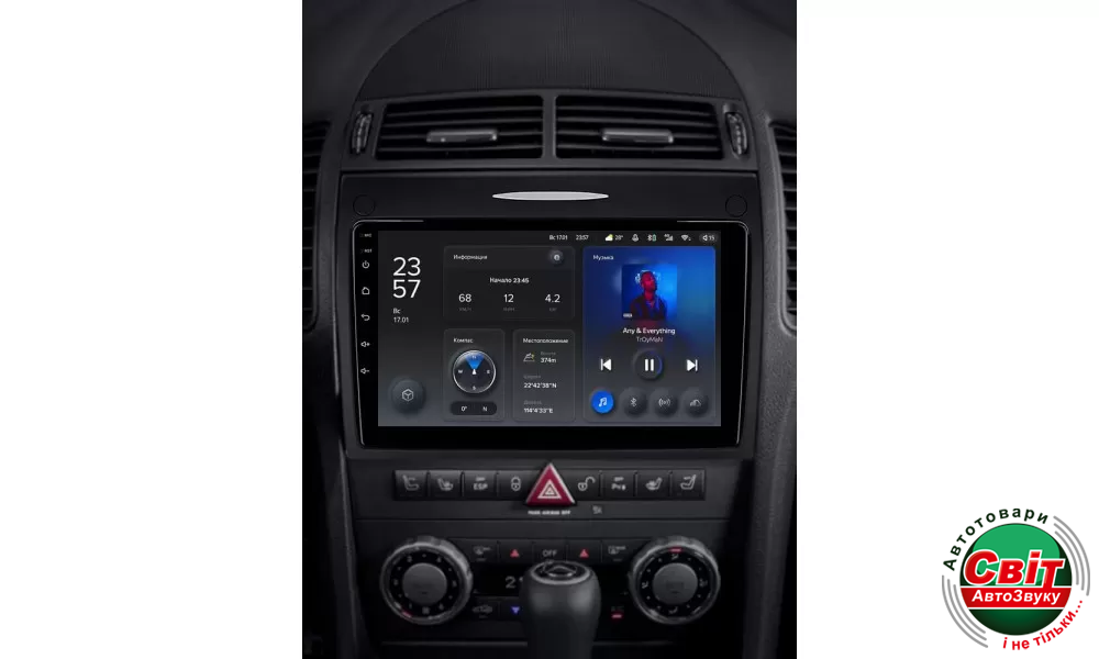 У штатній автомагнітолі TeYes X1 2GB+32GB 4G+WiFi вперше застосовується технологія автоматичної зміни режиму на темний і світлий. Визначення режиму дня і ночі здійснюється відповідно до включення світла фар або часу сходу та заходу сонця. Для досягнення візуальної єдності перемикання режимів відбувається не тільки на головному екрані, але і в інших інтерфейсах пристрою.