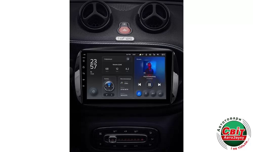 Автомагнітола штатна Teyes X1 2+32Gb Mercedes Benz Smart Fortwo 3 C453 A453 W453 2014-2020 9Штатна автомагнітола TeYes X1 - яскравий приклад багатофункціонального навігаційно-мультимедійного пристрою, корпус якого максимально впишеться в інтер'єр салону. Висока якість складання та комплектуючих - запорука бездоганної роботи головного пристрою. Крім стандартних функцій, властивих і штатним моделям, автомагнітола Тіайс Х1 на ОС Андроїд 10 має масу додаткових можливостей.