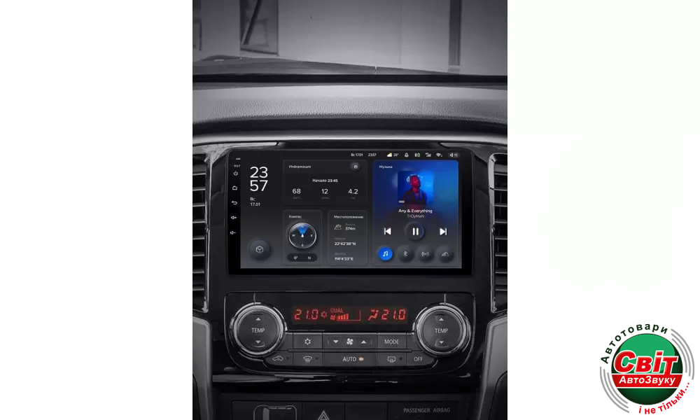 У штатній автомагнітолі TeYes X1 2GB+32GB 4G+WiFi вперше застосовується технологія автоматичної зміни режиму на темний і світлий. Визначення режиму дня і ночі здійснюється відповідно до включення світла фар або часу сходу та заходу сонця. Для досягнення візуальної єдності перемикання режимів відбувається не тільки на головному екрані, але і в інших інтерфейсах пристрою.