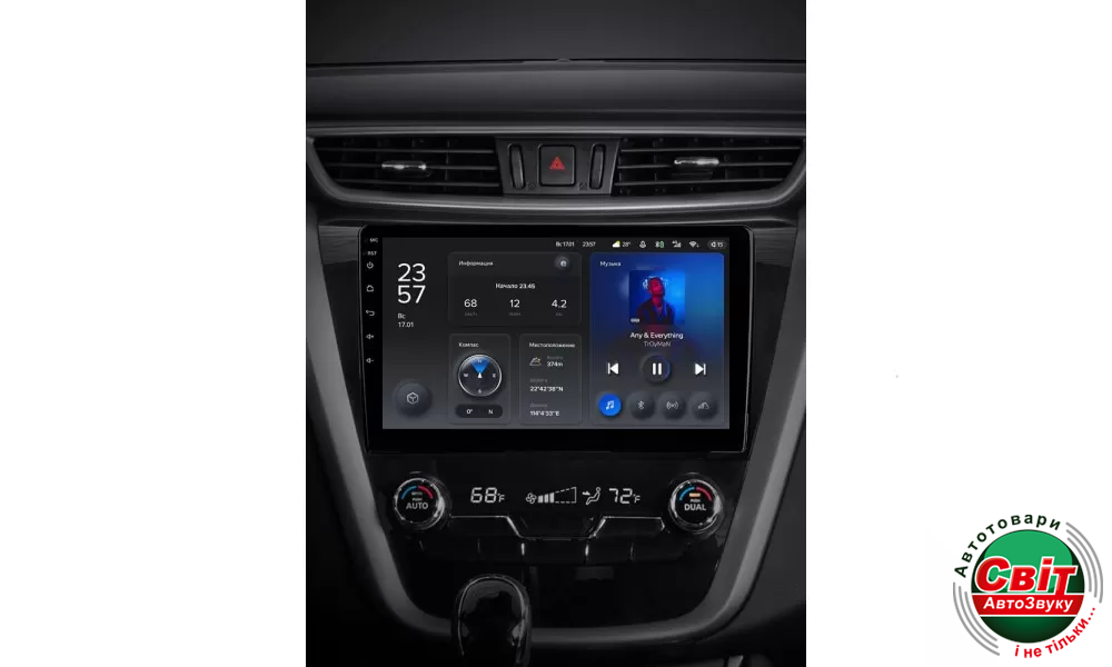 У штатній автомагнітолі TeYes X1 2GB+32GB 4G+WiFi вперше застосовується технологія автоматичної зміни режиму на темний і світлий. Визначення режиму дня і ночі здійснюється відповідно до включення світла фар або часу сходу та заходу сонця. Для досягнення візуальної єдності перемикання режимів відбувається не тільки на головному екрані, але і в інших інтерфейсах пристрою.