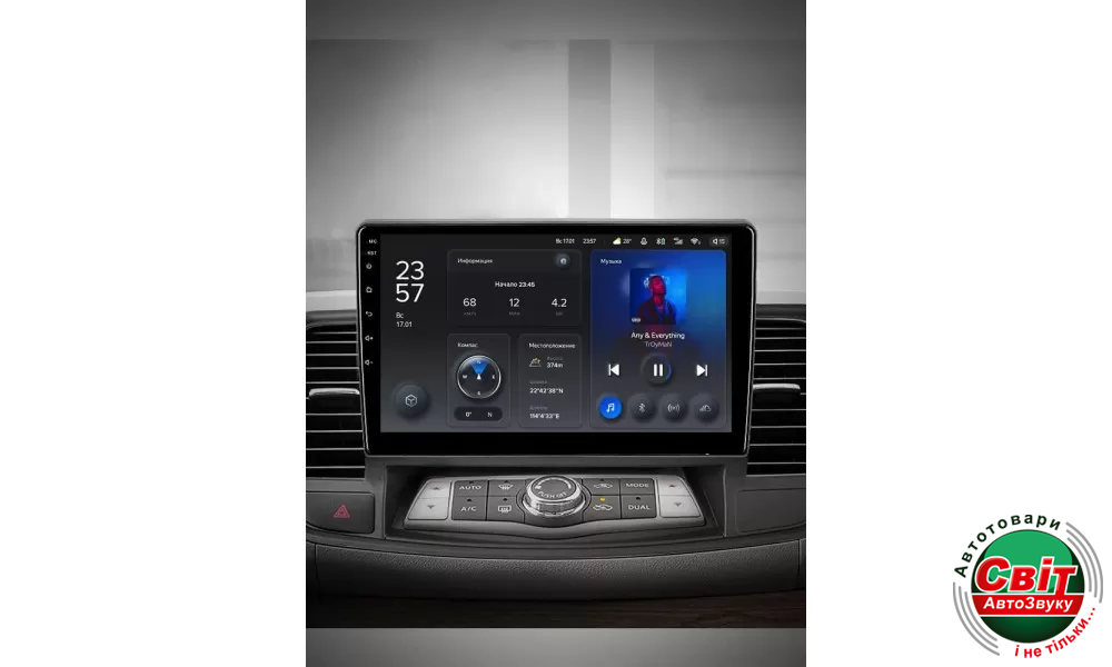 У штатній автомагнітолі TeYes X1 2GB+32GB 4G+WiFi вперше застосовується технологія автоматичної зміни режиму на темний і світлий. Визначення режиму дня і ночі здійснюється відповідно до включення світла фар або часу сходу та заходу сонця. Для досягнення візуальної єдності перемикання режимів відбувається не тільки на головному екрані, але і в інших інтерфейсах пристрою.