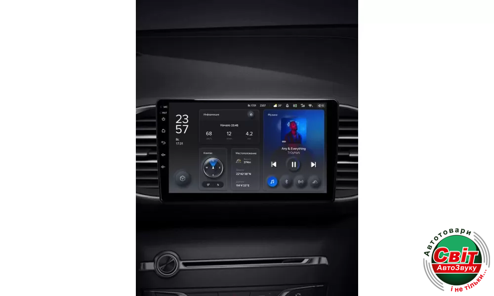 У штатній автомагнітолі TeYes X1 2GB+32GB 4G+WiFi вперше застосовується технологія автоматичної зміни режиму на темний і світлий. Визначення режиму дня і ночі здійснюється відповідно до включення світла фар або часу сходу та заходу сонця. Для досягнення візуальної єдності перемикання режимів відбувається не тільки на головному екрані, але і в інших інтерфейсах пристрою.