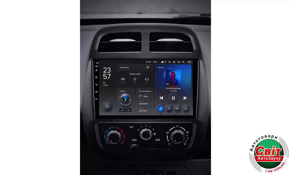 У штатній автомагнітолі TeYes X1 2GB+32GB 4G+WiFi вперше застосовується технологія автоматичної зміни режиму на темний і світлий. Визначення режиму дня і ночі здійснюється відповідно до включення світла фар або часу сходу та заходу сонця. Для досягнення візуальної єдності перемикання режимів відбувається не тільки на головному екрані, але і в інших інтерфейсах пристрою.