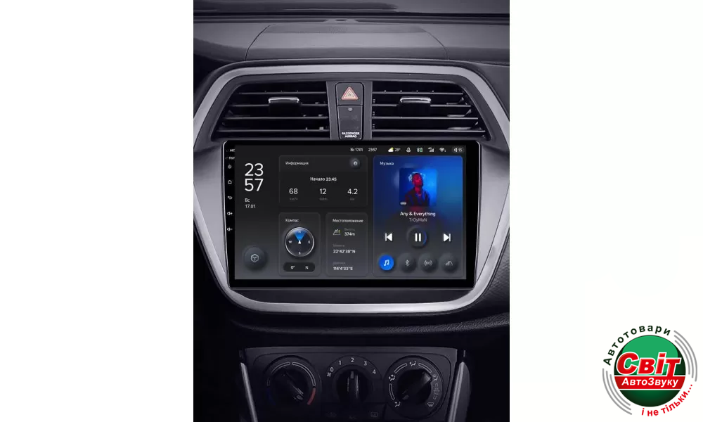 У штатній автомагнітолі TeYes X1 2GB+32GB 4G+WiFi вперше застосовується технологія автоматичної зміни режиму на темний і світлий. Визначення режиму дня і ночі здійснюється відповідно до включення світла фар або часу сходу та заходу сонця. Для досягнення візуальної єдності перемикання режимів відбувається не тільки на головному екрані, але і в інших інтерфейсах пристрою.