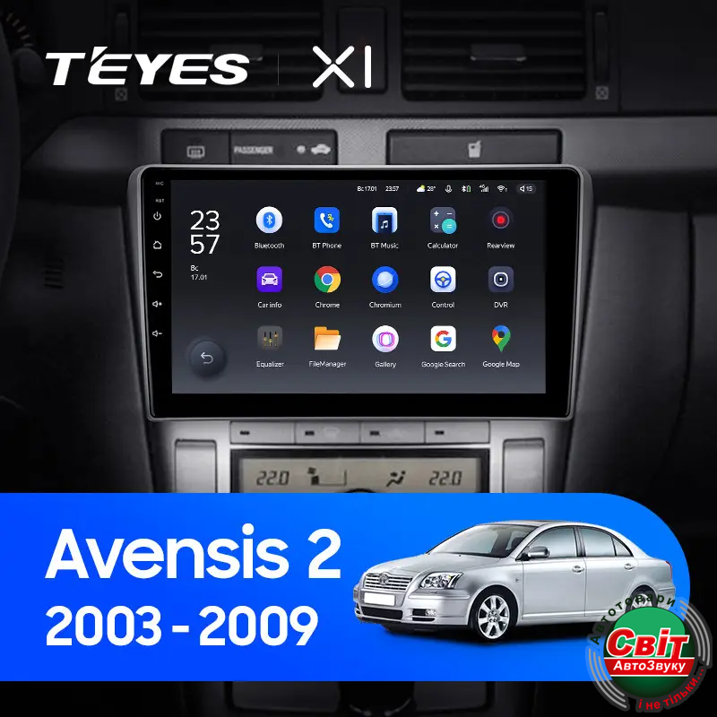 Автомагнітола штатна Teyes X1 2+32Gb Toyota Avensis T250 2 II 2003-2009 9Штатна автомагнітола TeYes X1 - яскравий приклад багатофункціонального навігаційно-мультимедійного пристрою, корпус якого максимально впишеться в інтер'єр салону. Висока якість складання та комплектуючих - запорука бездоганної роботи головного пристрою. Крім стандартних функцій, властивих і штатним моделям, автомагнітола Тіайс Х1 на ОС Андроїд 10 має масу додаткових можливостей.