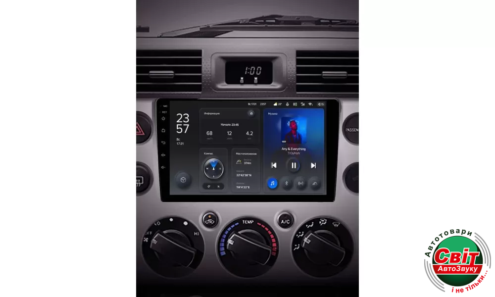 У штатній автомагнітолі TeYes X1 2GB+32GB 4G+WiFi вперше застосовується технологія автоматичної зміни режиму на темний і світлий. Визначення режиму дня і ночі здійснюється відповідно до включення світла фар або часу сходу та заходу сонця. Для досягнення візуальної єдності перемикання режимів відбувається не тільки на головному екрані, але і в інших інтерфейсах пристрою.