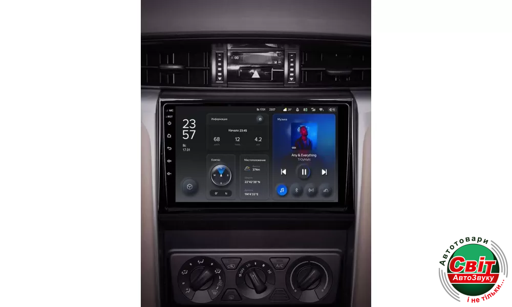 У штатній автомагнітолі TeYes X1 2GB+32GB 4G+WiFi вперше застосовується технологія автоматичної зміни режиму на темний і світлий. Визначення режиму дня і ночі здійснюється відповідно до включення світла фар або часу сходу та заходу сонця. Для досягнення візуальної єдності перемикання режимів відбувається не тільки на головному екрані, але і в інших інтерфейсах пристрою.