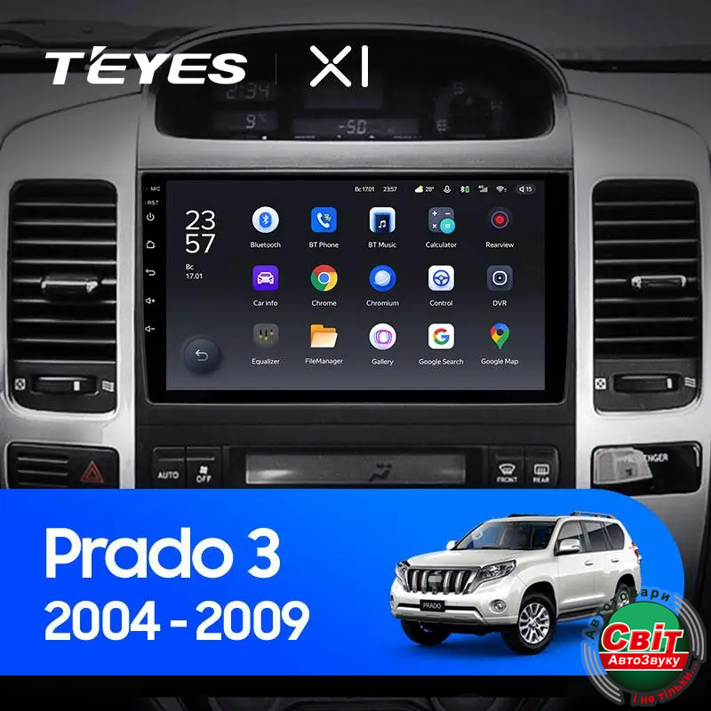 Автомагнітола штатна Teyes X1 2+32Gb Toyota Land Cruiser Prado 3 J120 2004-2009 (A) 9Штатна автомагнітола TeYes X1 - яскравий приклад багатофункціонального навігаційно-мультимедійного пристрою, корпус якого максимально впишеться в інтер'єр салону. Висока якість складання та комплектуючих - запорука бездоганної роботи головного пристрою. Крім стандартних функцій, властивих і штатним моделям, автомагнітола Тіайс Х1 на ОС Андроїд 10 має масу додаткових можливостей.