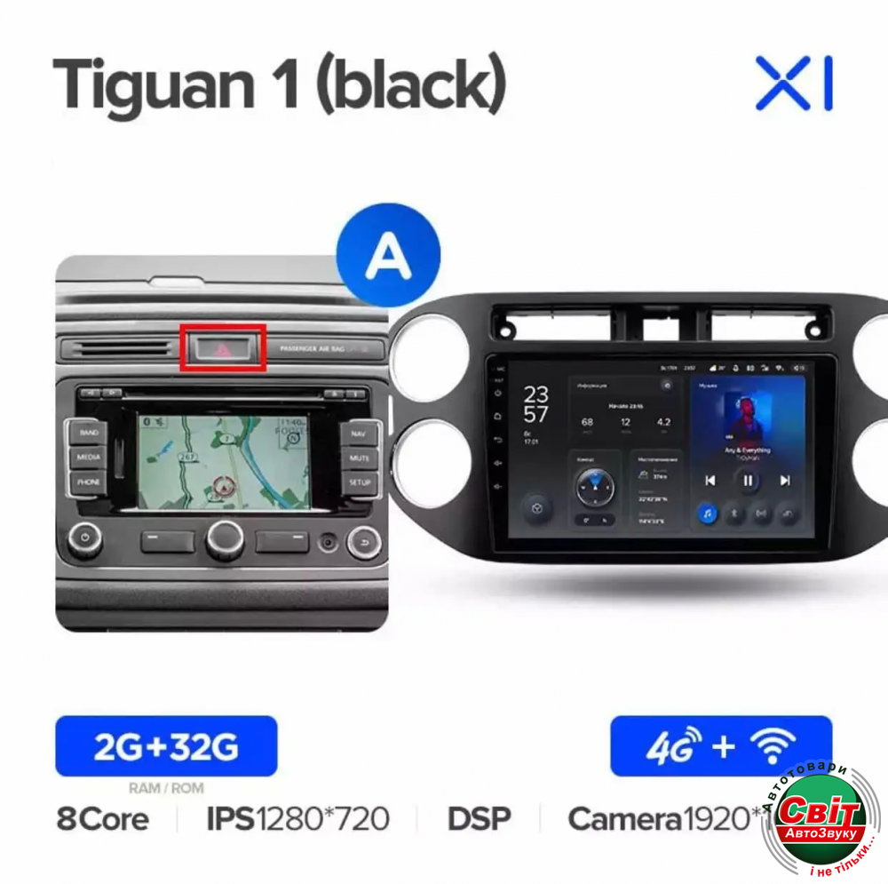 Автомагнітола штатна Teyes X1 2+32Gb Volkswagen Tiguan 1 NF 2006-2017 (A) black 9Штатна автомагнітола TeYes X1 - яскравий приклад багатофункціонального навігаційно-мультимедійного пристрою, корпус якого максимально впишеться в інтер'єр салону. Висока якість складання та комплектуючих - запорука бездоганної роботи головного пристрою. Крім стандартних функцій, властивих і штатним моделям, автомагнітола Тіайс Х1 на ОС Андроїд 10 має масу додаткових можливостей.