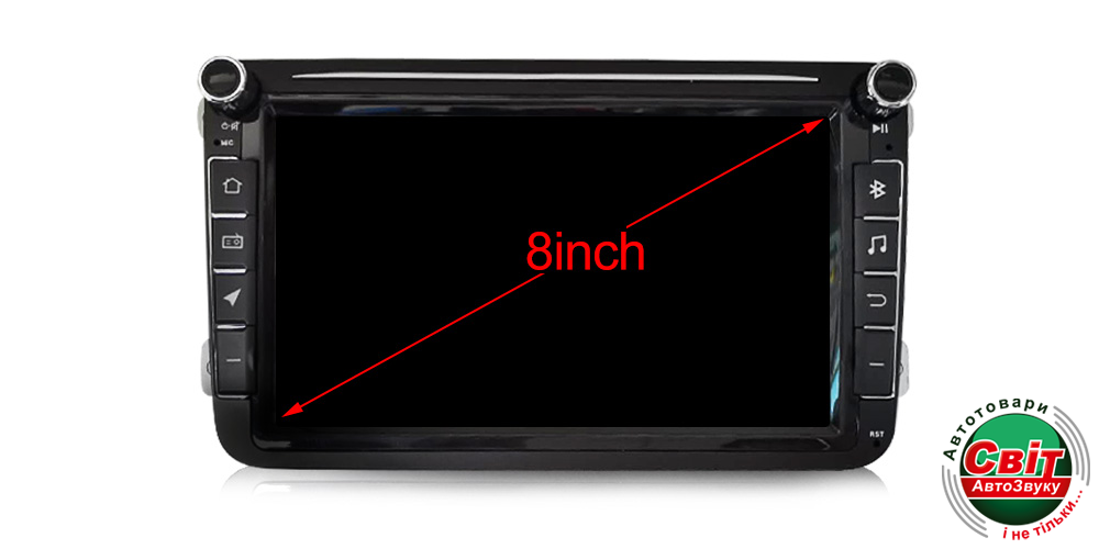 8 дюймів екран HD роздільна здатність 1024x600 Ємнісний морозостійкий сенсор, мультитач до 5 торкань (наприклад, масштабування й обертання мапи навігації 2 пальцями), чуйний і легкий дотик — так само, як на сучасних смартфонах і планшетах.Екран дає змогу відтворювати відео в дуже гарній якості, яскраві, соковиті кольори. Великі кути огляду екрана дають змогу насолоджуватися переглядом із будь-якого сидіння вашого автомобіля. Передбачено поділ екрана на дві частини, що дає можливість одночасно використовувати дві програми, наприклад, навігацію та радіо.