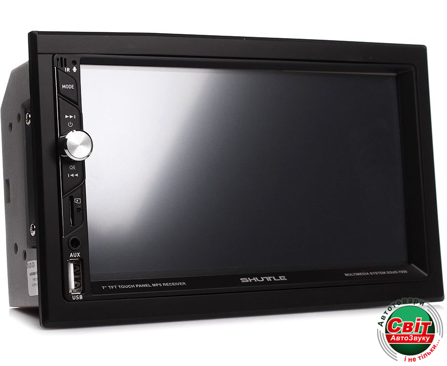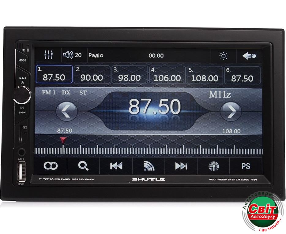 Автомагнітола Shuttle SDUD-7050 Black/MulticolorАвтомагнітола Shuttle SDUD-7050 Black/Multicolor з Bluetooth - це автомобільний мультимедійний центр, який виконаний у зменшеному корпусі SLIM і оснащений великим сенсорним дисплеєм діагоналлю 7 дюймів. Пристрій володіє аналогічним посадковим розміром, як у моделей з діагоналлю дисплея 6.2 дюйми, завдяки чому виключає проблеми з установкою в звичайну шахту типорозміру 2DIN.