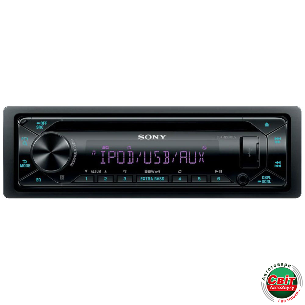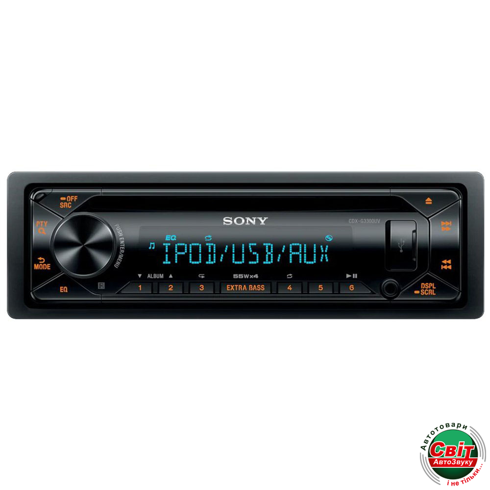 Автомагнітола Sony CDX-G3300UЭто стильный и функциональный ресивер, от от компании Sony, обладает мощными звуковыми характеристиками и прекрасным дизайном. Размер установки универсальный 1DIN: ширина 178 мм, высота 50 мм и глубина 176 мм. Передняя панель съемная для предотвращения кражи, с 2-зональной системой цветной подсветки, Вы можете выбрать себе любые из 35 000 оттенков. ЖК-экран с вертикальным выравниванием для более широкого угла обзора и с увеличенной контрастностью в пять раз с обычными дисплеями. Эта универсальная автомагнитола будет воспроизводить вашу любимую музыку в форматах MP3, WMA и WAV с CD-дисков или USB-носителей.