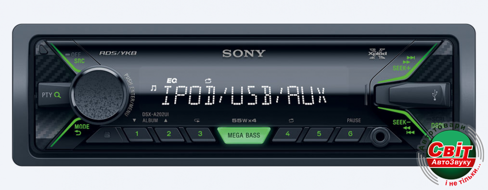 Автомагнітола Sony DSX-A202UIАвтомобильный медиаресивер с фронтальными портами USB и AUX, функцией Mega Bass и встроенным тюнером AM/FM.