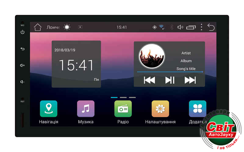 Бренд Swat оснастил модель встроенным сенсорным дисплеем с диагональю 7 дюймов, отличающимся высоким разрешением. Также возможно управление системой через кнопки на руле.