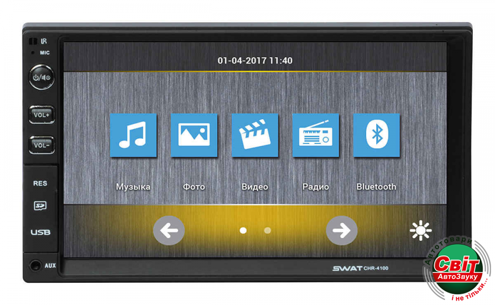 Автомагнітола SWAT CHR-41002 Din мультимедийный ресивер с 7-дюймовым сенсорным экраном, Bluetooth, USB, Aux-входом и видеовыходом. Также поддерживает управление с кнопок руля и имеет выход на камеру заднего вида.