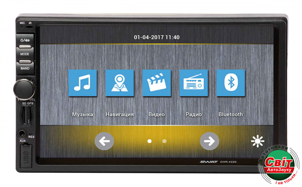 Автомагнітола SWAT CHR-42202 Din мультимедийный ресивер с навигацией, Bluetooth, USB, Aux-входом и видеовыходом. Также поддерживает управление с кнопок руля и имеет выход на камеру заднего вида.