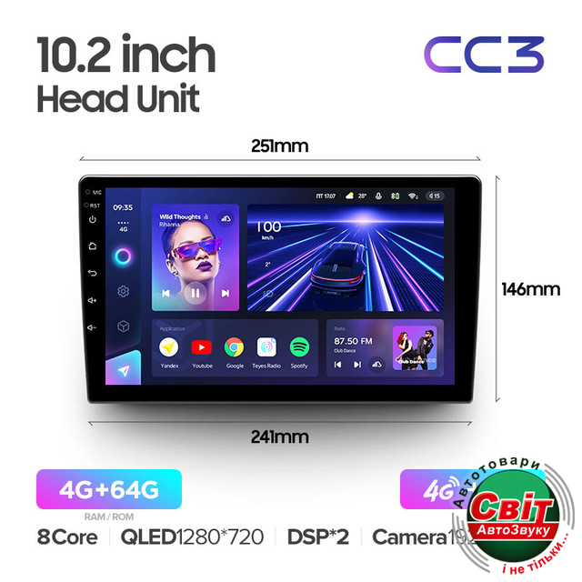 - ›Автомагнітола Teyes CC3 4/64Gb 10 (без рамки)