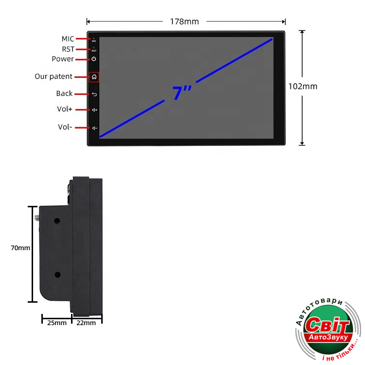 - Передня панель: 102х178мм