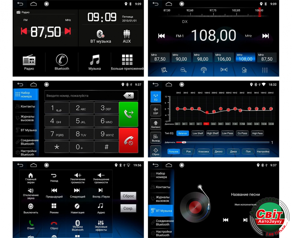 У магнітолі встановлено цифровий DSP підсилювач звуку потужністю 4x55 Вт. Це забезпечує чудову якість звуку, яка ліпша, ніж у магнітоли заводу. За частотні виправлення звуку відповідає 14 смугний еквалайзер, який дозволяє використовувати як фіксовані параметри, так і власні.