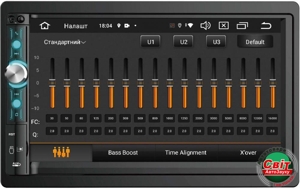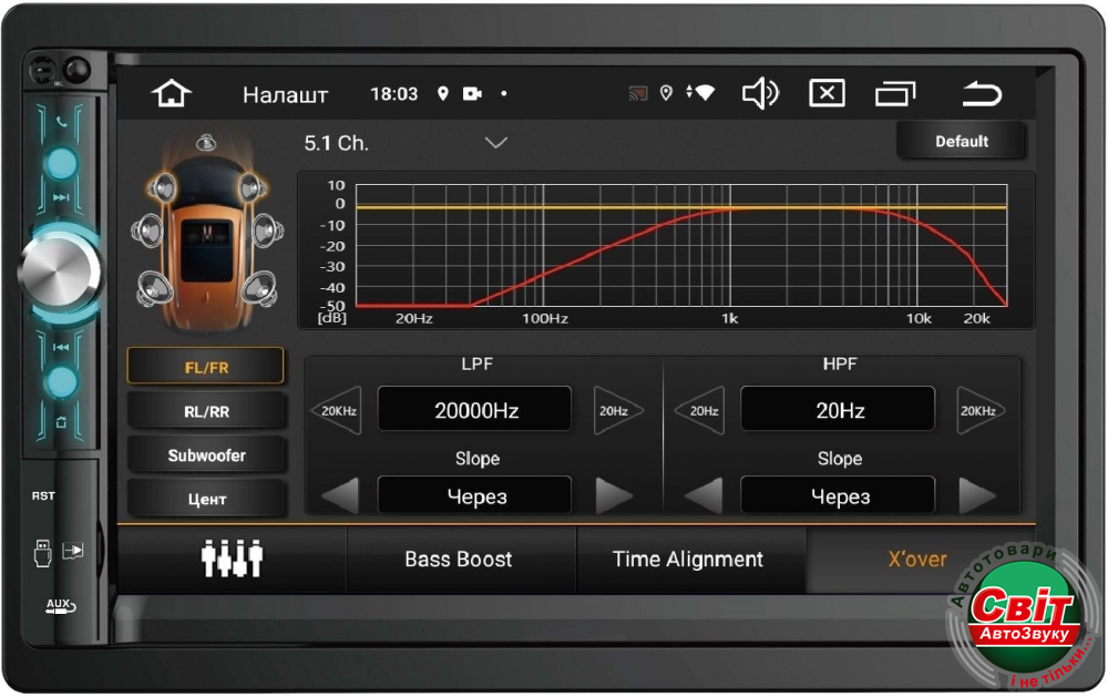 Підсилювач звуку YD 7388 IC з максимальною потужністю 4х45 Вт + процесор ASP 37033 видають якісний насичений звук з великою кількістю регулювань "під себе". Ви зможете налаштувати баланс між динаміками, зробити тимчасові затримки або просто змістити центр звучання у необхідному напрямку. До речі, для більш якісного звуку є можливість підключення сабвуфера.