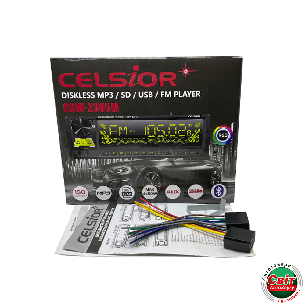 Автомагнітола Celsior CSW-2305MUSB/SD автомагнітола Celsior CSW-2305M з Bluetooth - це бездисковий MP3/SD/USB/FM програвач.