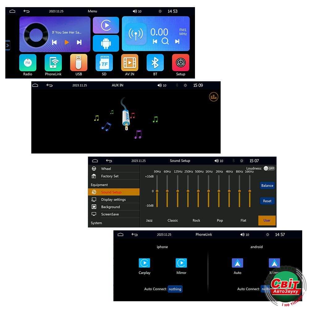 - Phone Link (керування смартфоном з екрану магнітоли)